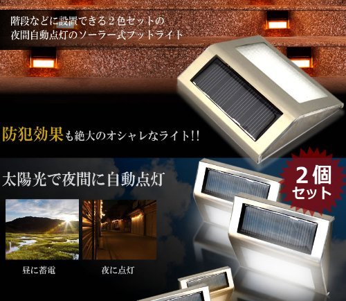 [Present-web] 階段などに設置できる 太陽光パネル搭載 夜間自動点灯 フット LEDライト 2個セット 【ホワイト】