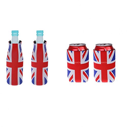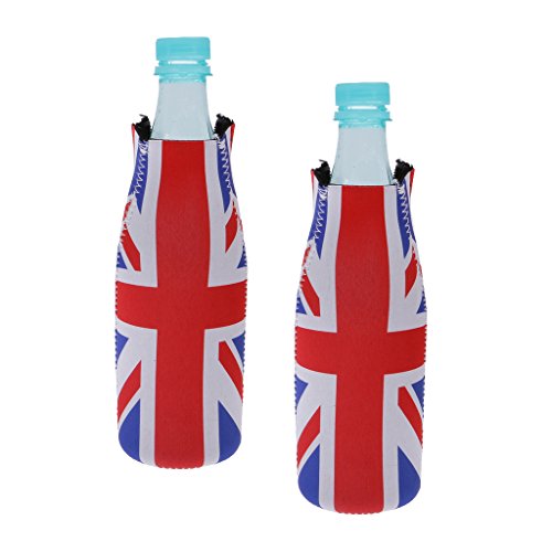 Prettyia 2ペア入り 缶カバー ユニオンジャック 英国旗 ずんぐり スリーブホルダー ビール瓶 飲料 保冷効果 パーティーの好意