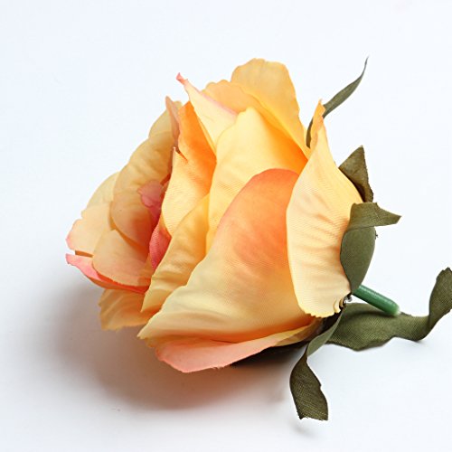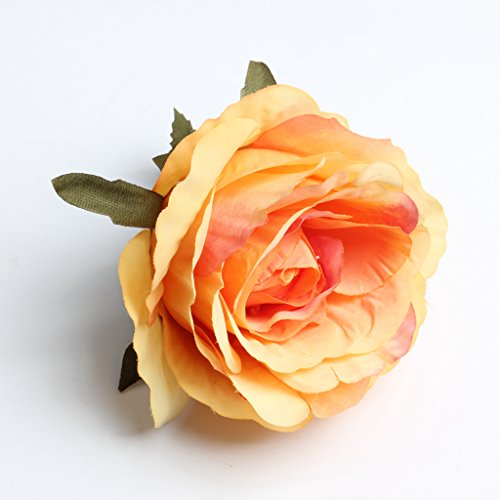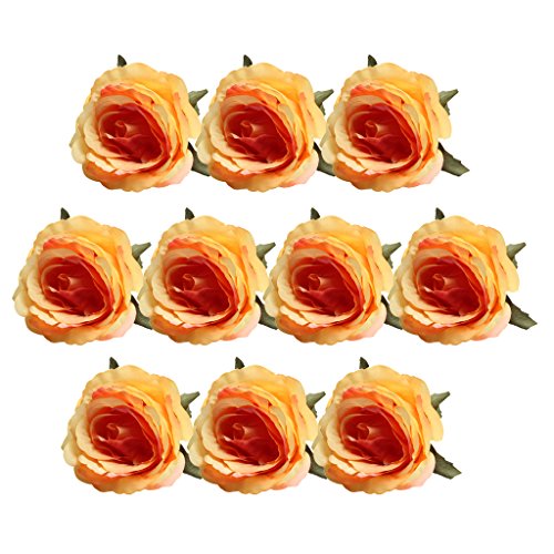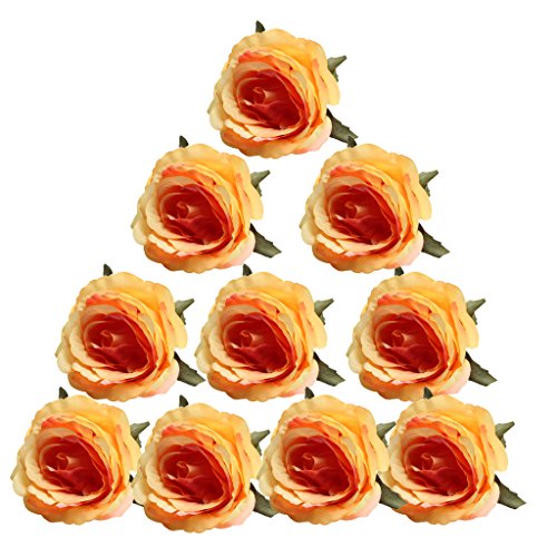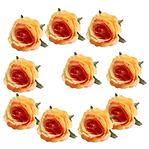 Prettyia 10個 生き生き薔薇 ヨーロッパ風 ホーム飾り 花部分のみ ヴィンテージ 手首花作り シルクバラ 造花 - オレンジ