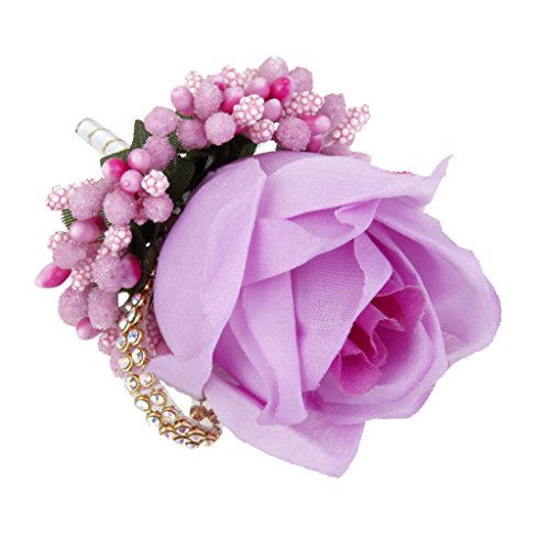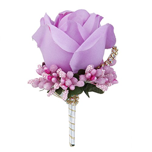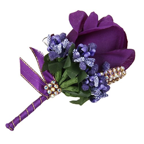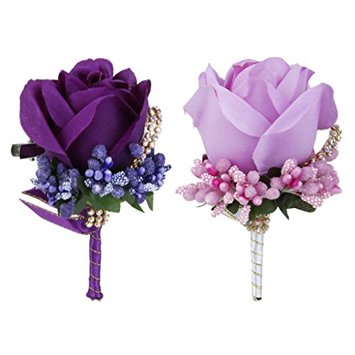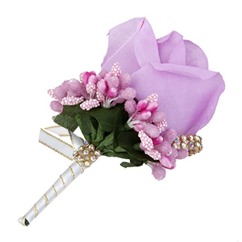 Prettyia クリスタル ローズフラワー ブローチピン ブートニア 胸飾り 結婚式 新郎新婦 アクセサリー 紫 2個入り