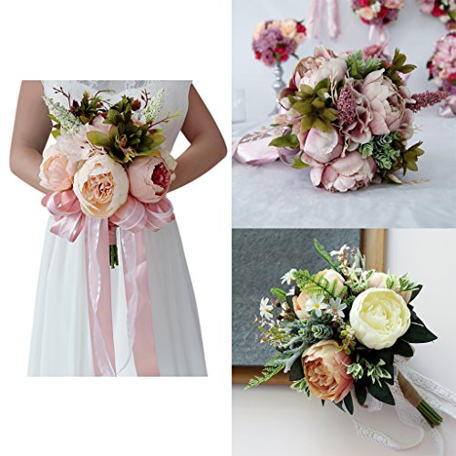 Prettyia 花束 手の花 フラワー ウェディング ボンネット ロマンチック シルクフラワー 3タイプ選べ - 1