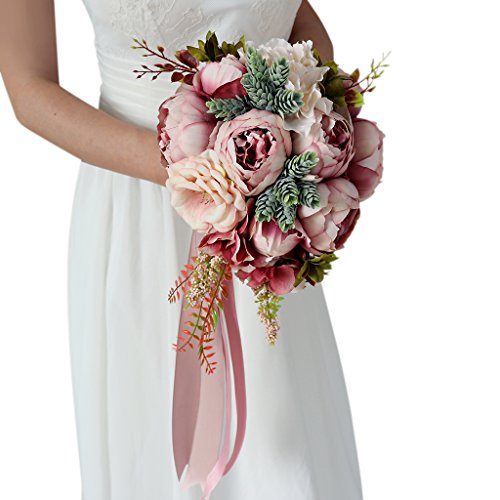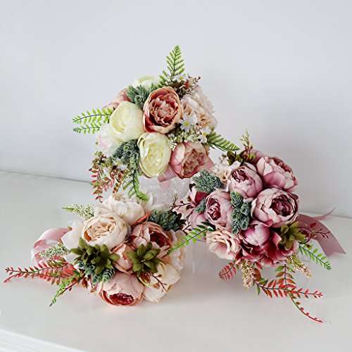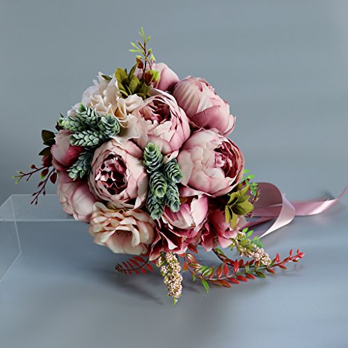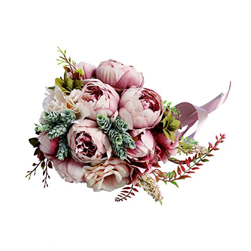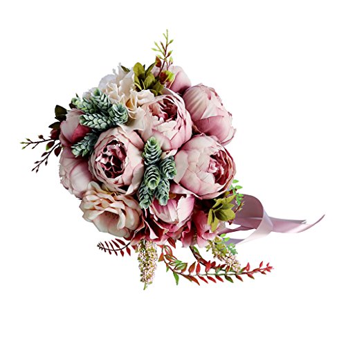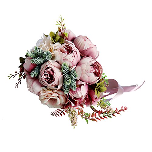 Prettyia 人工牡丹 フラワー 造花 フラワーブーケ 結婚式 花嫁 花ガール パーティー 装飾 小道具 3色選べ - 深いピンク