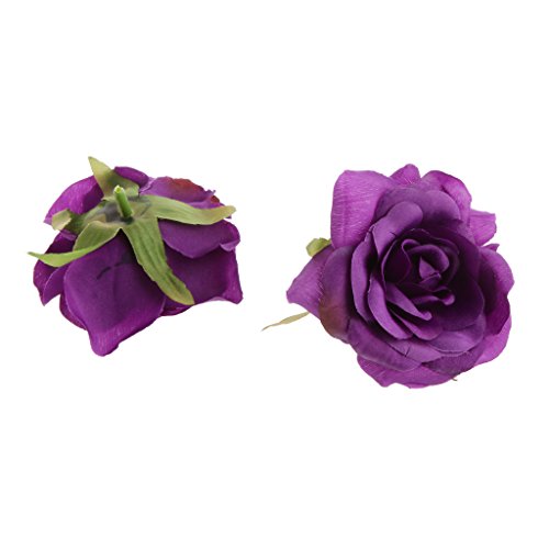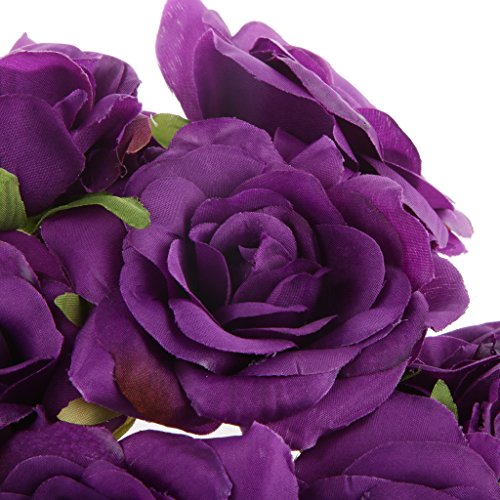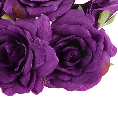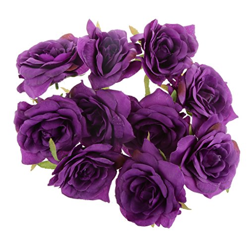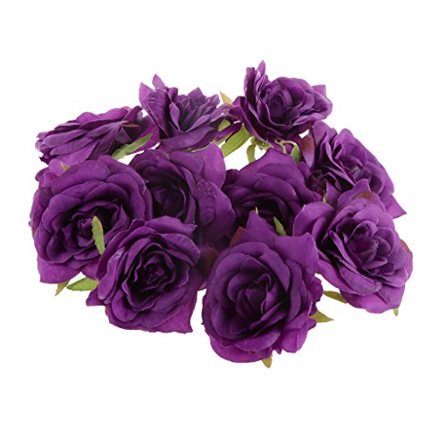 Prettyia バラ 造花 ローズ 花びら 部屋 壁 DIY工芸 素材 飾り 10ヘッド 全8色 - 紫