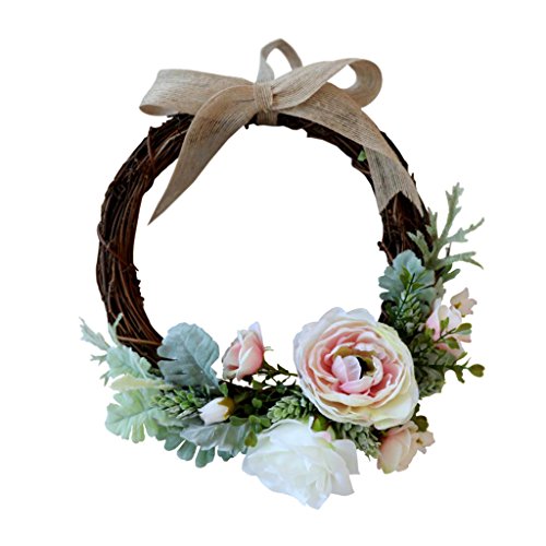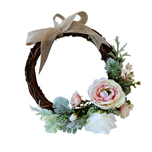 - 愛らしいブドウの花輪、人工のバラの花とリボンの弓で飾られています。