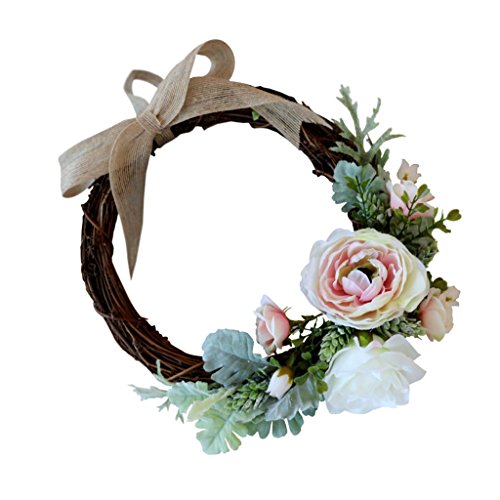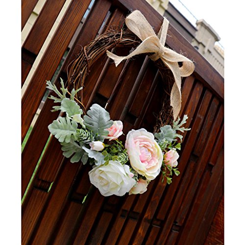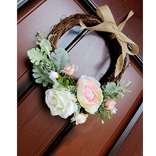 Prettyia フラワーリース お花 造花 飾り付け フラワー 花輪 きれい 店舗 玄関 壁掛け 庭園 飾り 結婚式 撮影 道具 4色選べる - クリーム