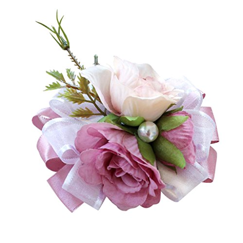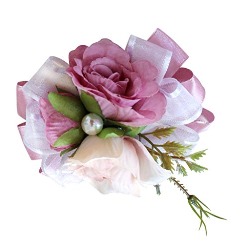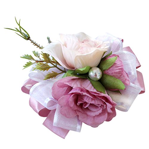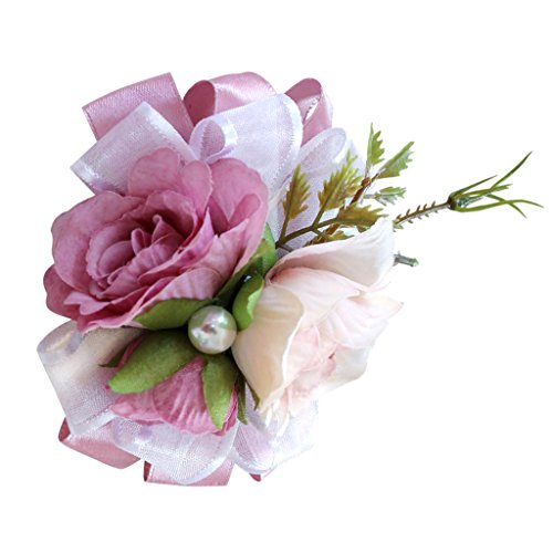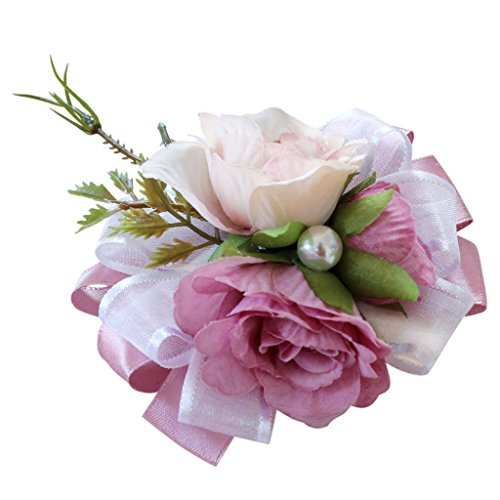 Prettyia 手首コサージュ 結婚式 フラワー 手花 お花 造花 ブライダル花 人工シルク シルク花 飾り付け 4色選択 - ダスティピンク