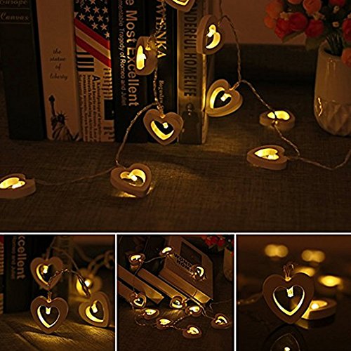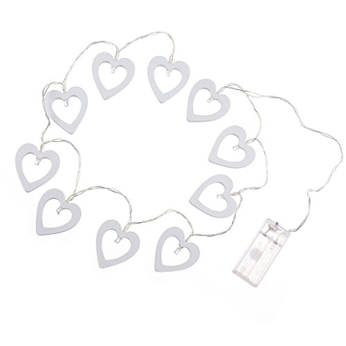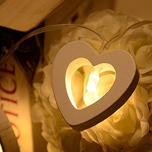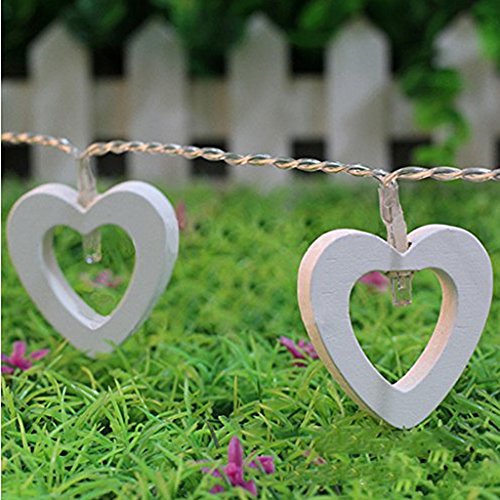 Prettyia ハート型ライト LED 白 木製 ストリング クリスマス ウェディング フェスティバル 飾り ファリー 庭園