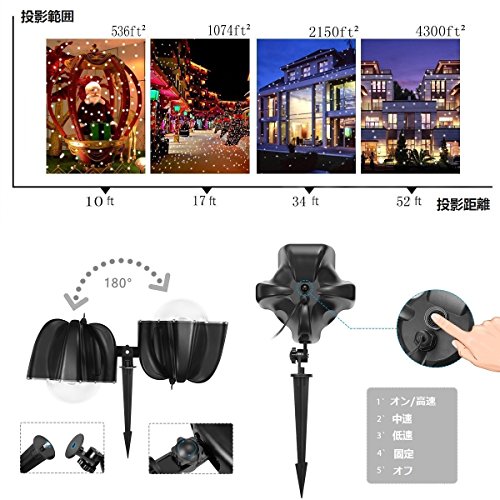 - 【使用簡単】マウントブラケット付き、芝生や地面にインストールして投光する事が出来ます。低発熱、低消費電力。180°調整可能なプロジェクターヘッドはインストール簡単!電源に接続すると、すぐに光ります!操作簡単!