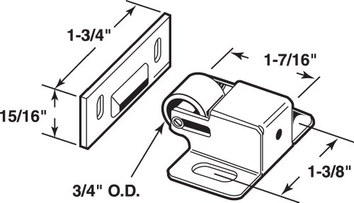prime-line製品N 7386キャビネット/クローゼットドアローラーキャッチ、サテンニッケル