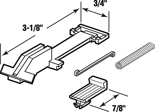 Window sash stop kit complete with lower latch, tilt spring, slide button and retainer. Item is sold in packages of 2.