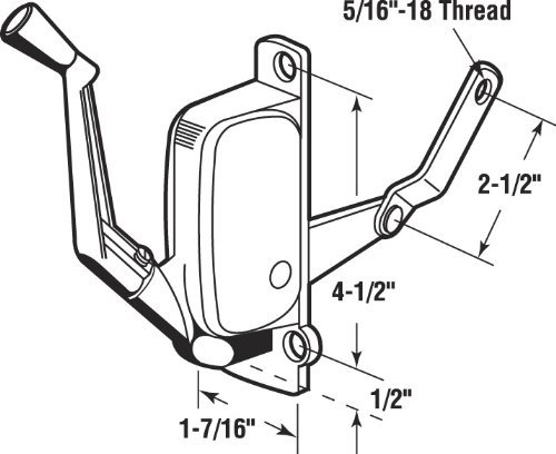 Offset mounting hole on left side. This is a Awning Windor Operator. It is a Right-hand awning window operator for Harcar windows. It has Case-hardened steel gears and crank. It has a 2-1/2 Link. Made of Steel/Aluminum.