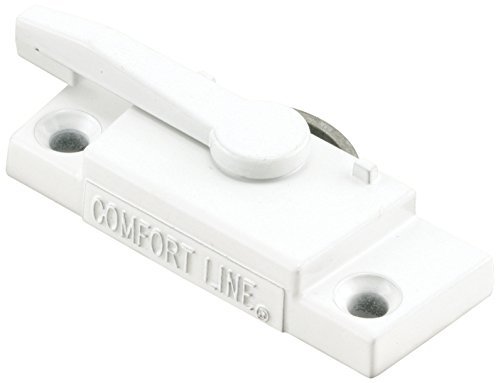 Vinyl double hung window sash lock and keeper. 2-3/16" hole spacing with 11/16" backset, white painted finish. Used by Comfortline windows.