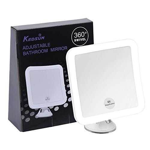 KEDSUM 8倍 浴室鏡 LED化粧鏡 風呂鏡 吸盤ロック付き 化粧ミラー 360度回転 メイクミラー 卓上鏡 髭剃り&メイク鏡
