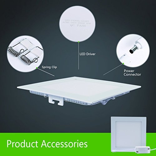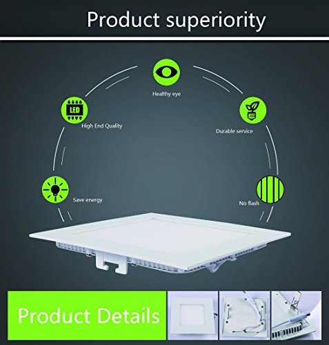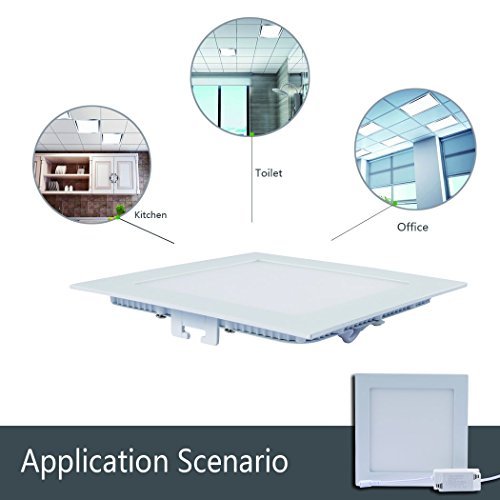 ProGreen 18W 8-inch Ultra-thin Square Flat LED Panel Light, Non-Dimmable LED Recessed Ceiling Lighting, 1260lm, 120W Halogen Equivalent, Cold White 5000k, Panel Downlight with 85-265V Power Supply for Home, Office and Commercial Lighting etc.