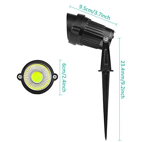 キャストアルミ製、ガラスレンズ付き、チルトアップ/ダウン調整可能、UV保護黒塗装仕上げは、耐久性のある屋外での使用に最適です。 85%省エネで環境に優しい。 このボックスには、1pcsスポットライト5W Epistar COB LED電球、入力電圧DC12Vが含まれています。 2年間の保証。