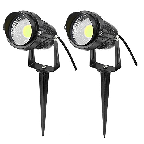 Prodeli スーパー明るい屋外LEDの装飾的なスポットライトの照明5WのCOBのLEDの風景庭の壁の庭の道の芝生の光スパイクスタンドDC12V(クールホワイト)【2個セット】