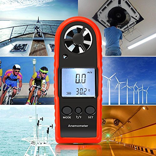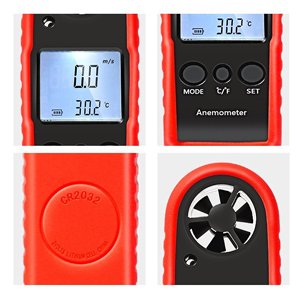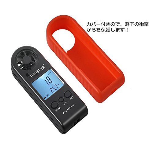 デジタル 風速計 Proster x温度計搭載モデル 風速計測 超簡単 手軽 小型 日本語説明書付き (レッド)