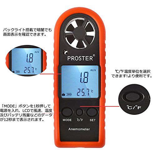 Proster デジタル 風速計 温度計搭載モデル 風速計測 超簡単 手軽 小型 日本語説明書付き