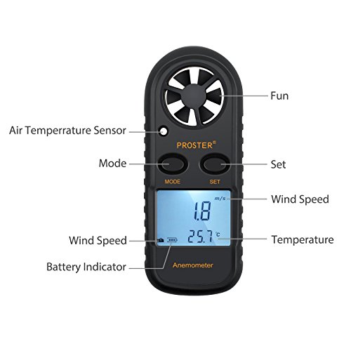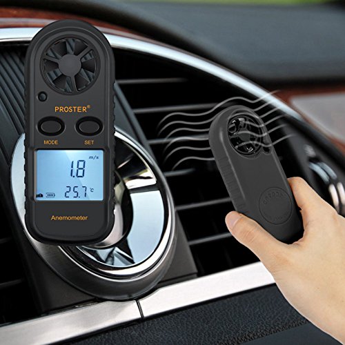 Proster デジタル風速計 温度計搭載 小型 ポケットアネモメーター データホルド機能 ビューフォート風力階級表 (ブラック)