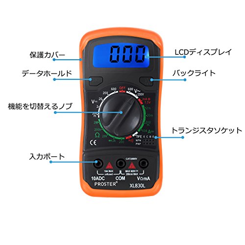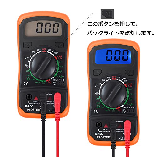 Proster デジタル マルチメーター(DMM) LCD大画面付き バックライト DC電圧 AC電圧 DC電流 最大表示2000 Ohm 日本語説明書付き 18ヶ月保 証