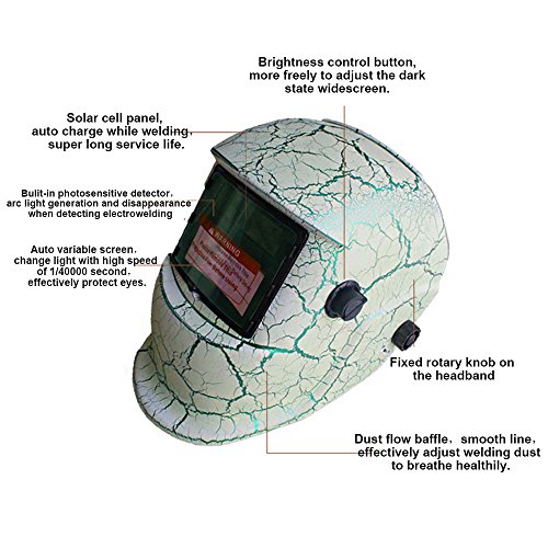 - ソーラー電池とボタン型リチウム電池で、バッテリー寿命は約1,500時間です。いろいろな仕事環境に適応、安心で安全な溶接用マスクです。