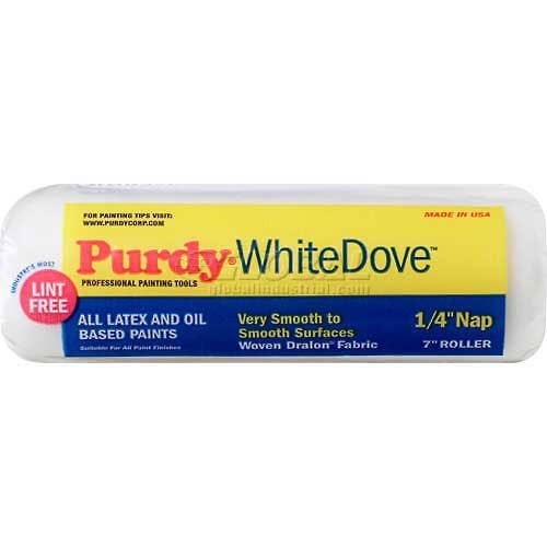 Purdy's most popular roller covers . use with all paints and exterior stains, especially where a smooth, lint free finish is desired. White Dove series features a high density woven cover, made of Dralon, a derivative of nylon, which enables the paint to flow freely into and out of the cover for easy rolling and a high quality finish. White Dove covers feature thousands of miniature flagged filaments so paint leaves from thousands of tiny surfaces for a smooth, virtually perfect finish. The high density acrylic fiber is also capable of carrying large quantity of paint, leading to improved efficiency and productivity.