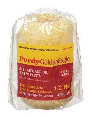 Purdy's Golden Eagle roller covers hold more paint which allows you to finish faster. Made with a high density knitted polyester fabric, it carries a large amount of material and releases very evenly. For use with either oil-base or water-base paints, and for interior or exterior applications.