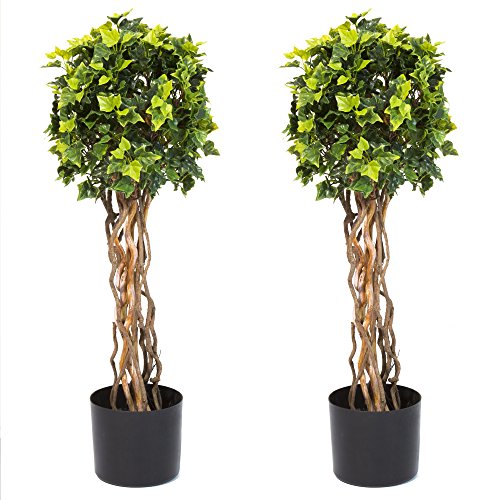 Pure Garden 30インチ英語アイビーSingleボールトピアリーツリー – 2のセット