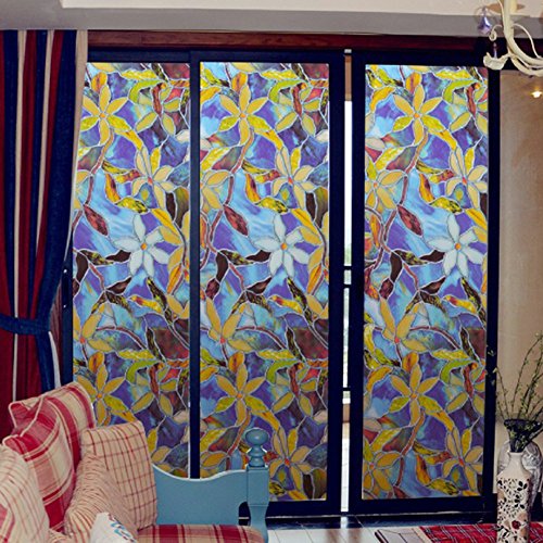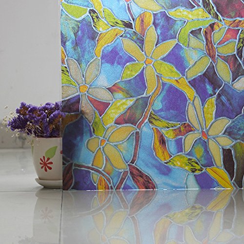 Pursue ガラス窓用フィルム 窓シール ステンドグラス 遮光シート 目隠し ガラス窓 遮光フィルム 紫外線カットガラス 45 * 200CM