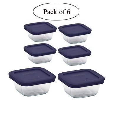 - Pyrex Square Glass Food Storage Containers set with Dark Blue Plastic Cover, Use For Storage Food , Baking Dish, And Lunch Box ( 2-4cup in 4-1cup with Blue Lids) (6, 2-4cup in 4-1cup)