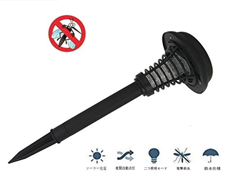 蚊取り器 屋外昆虫キラー 太陽光発電 UV光源吸引式捕虫器 虫退治 害虫駆除 虫除け モスキートキラー (ブラック)