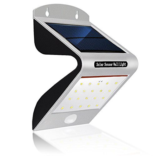 20 LEDモーションセンサーライトソーラーセンサーウォールライト暖かい夜のLEDライト防水スイ ッチ 夜間照明自動オン/オフ、木、パティオ、庭、庭、ドライブウェイ、階段、プールエリアのための防 水無線ソーラーパワースポットライト (Silver)