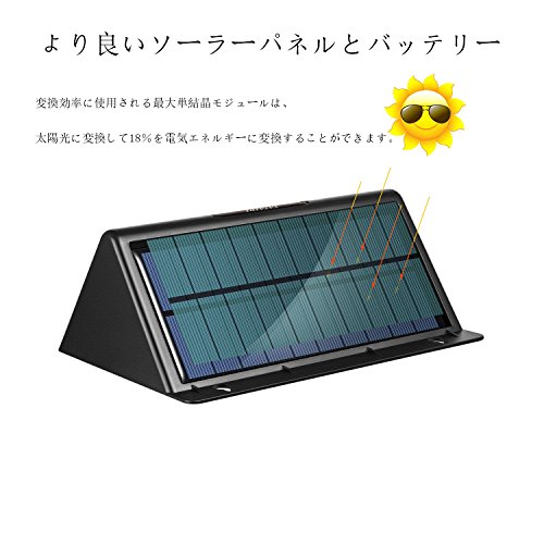 - 【省エネ&防水】日中ソーラーパネルで太陽光を集め、そのエネルギーを内蔵充電池に蓄積します。また、P65防水設計で雨に濡れても大丈夫です、屋根のない場所、外からの雨にさらされるような場所に設置しても心配ありません。電源がオフなのかオンなのかがわからない場合は手でソーラーパネルを覆うと確認出来ます。
