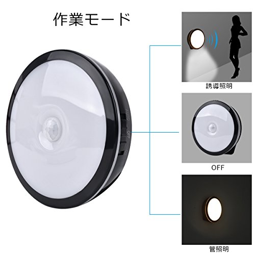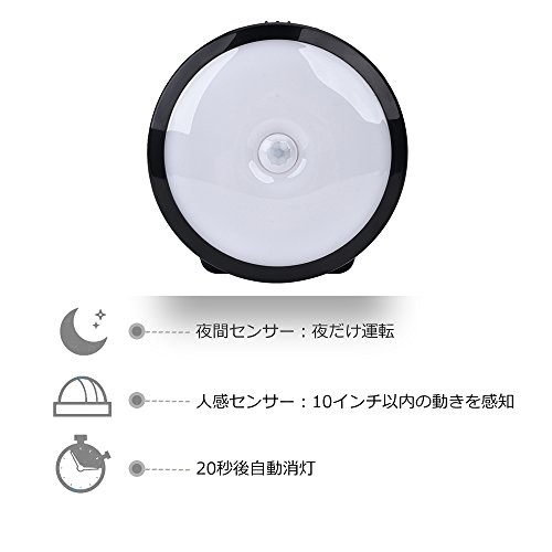 貼り付け型磁力で固定ナイトライト6LEDベッドサイドランプUSB充電式 足元灯人感センサー センサーライト小型子供安全素材 雰囲気ライトダイニング居間寝室用 (黒)