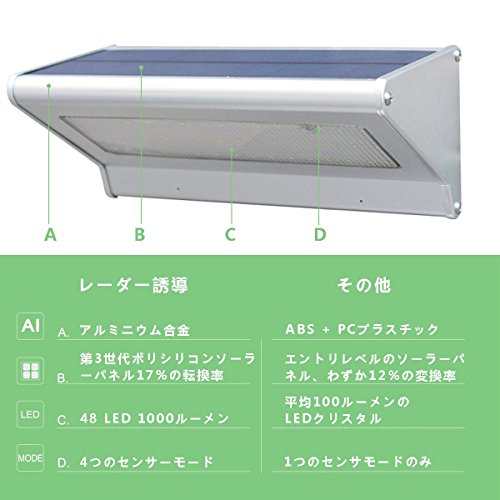 YATAIDI ソーラーライト センサーライト 玄関ライト 48LEDソーラーライト 高輝度 防水無線 壁掛け 太陽発電 夜間自動点灯 省エネ(ホワイト)