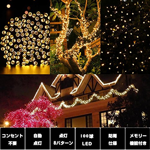 YATAIDI LEDソーラーライトストリングライトストリング100球イルミネーションライトIP65防水USB充電ロマンチックな雰囲気装飾祝日パーティー庭クリスマスなどに(イエロー)