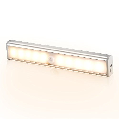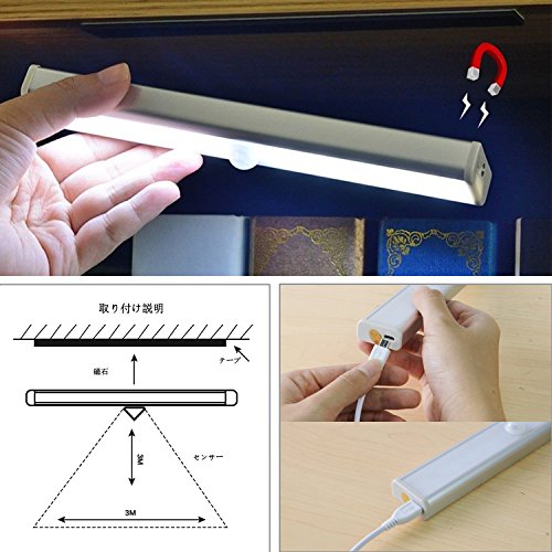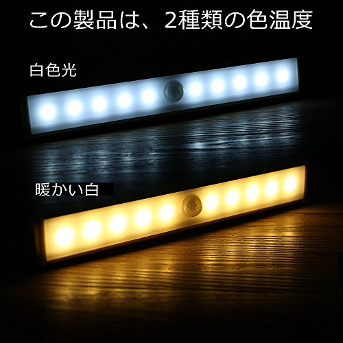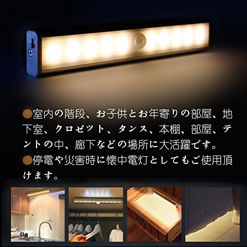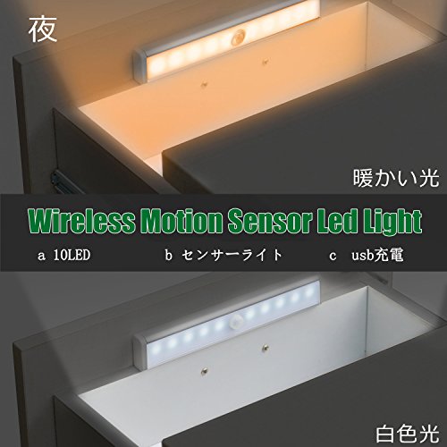 USB充電式無配線10LED人感センサー センサーライト貼り付け型省エネナイトライトワードローブライト玄関階段ライト寝室廊下作業間地下室車庫などに専用 (ウォームホワイト)