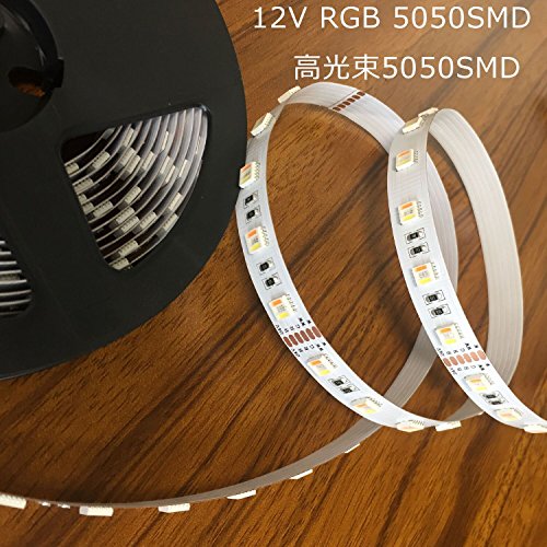 SMDタイプ: 5050、SMD個数: 60個/m、動作電圧: DC12V、サイズ:長さ5m 幅10mm 厚さ2mm