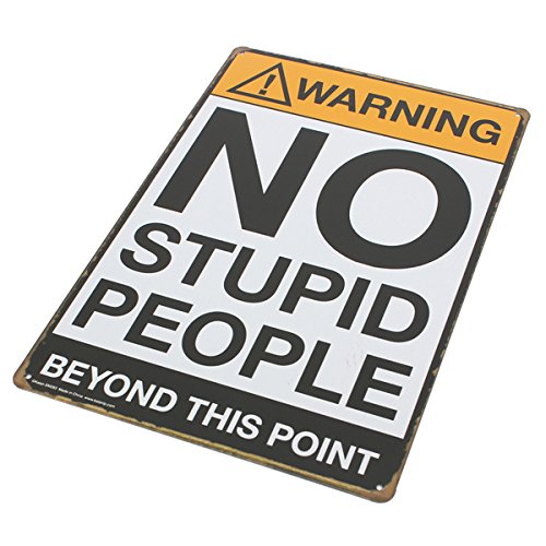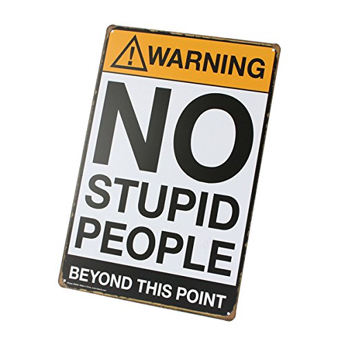 1X no stupid people tin sign