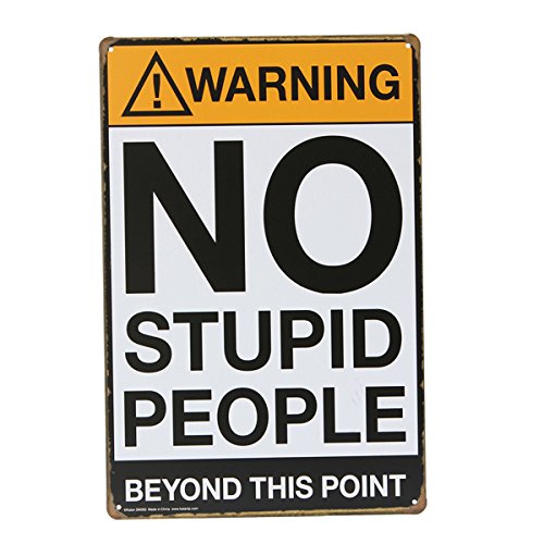 This no stupid people tin sign vintage decorative painting is manufactured with folded edges for safety and stability.It is suitable for many places,such as bar,dining room,billiard house,hotel,club wall decoration,creating contracted but fashionable atmosphere.an ideal gift for your friends.