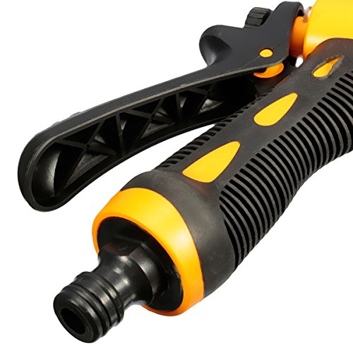 Spray pattern can be adjusted from jet stream to cone spray to mist spray by turning the head, easy to control and adjust pattern, with an adaptor that fits all garden hoses.