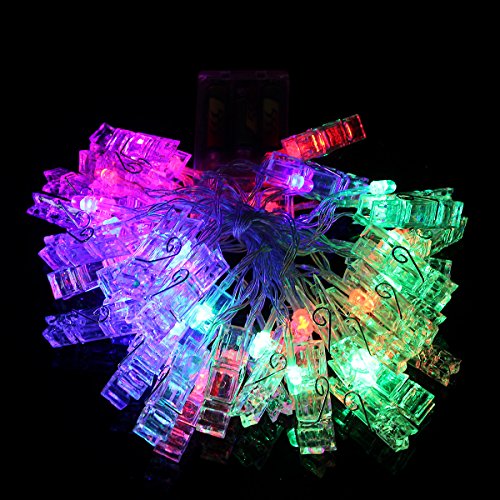- battery powered multicolor 5m 40leds photo picture peg clip