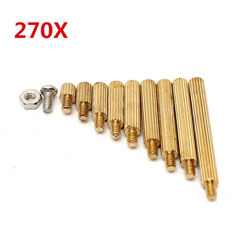 270pcs PCB M2 Male Female Threaded Brass Spacer Standoffs Screw Nut Assortment Set