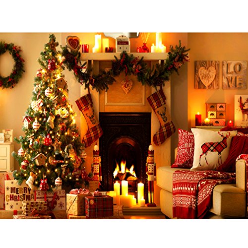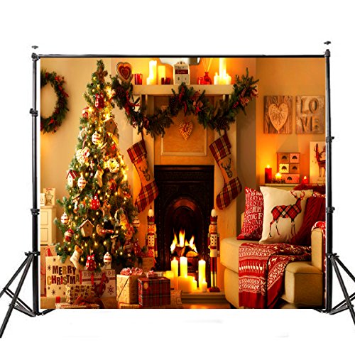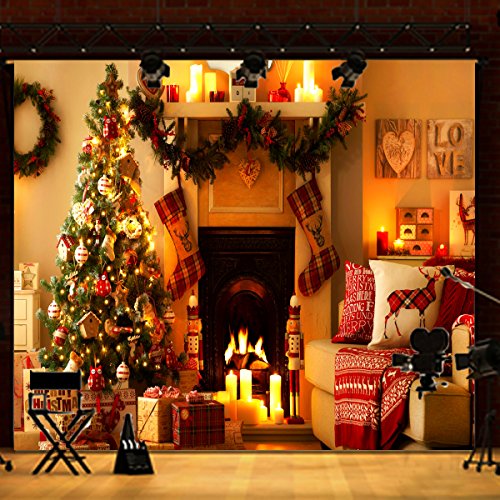 - 5x7ft vinyl warm light christmas tree fireplace stocking photography