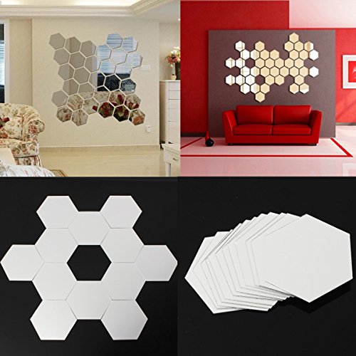 - 12pcs mirror wall sticker hexagon removable acrylic 3d mirror