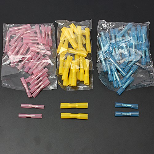 100Pcs 12-10 16-14 22-18 GA Heat Shrink Butt Crimp Terminal Connector