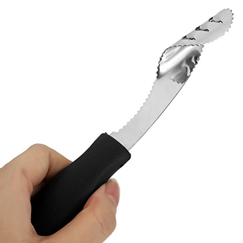 Stainless steel blade with serrated edge, sharp inner teeth.
