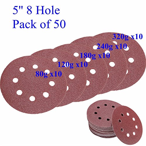 50pcs 5 inch 8 hole 80\/120\/180\/240\/320 grit sanding disc