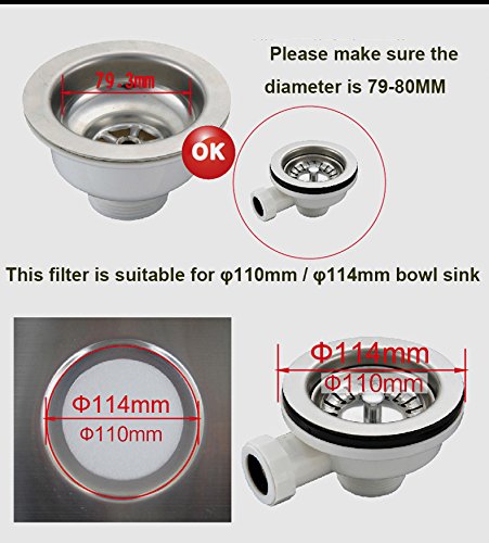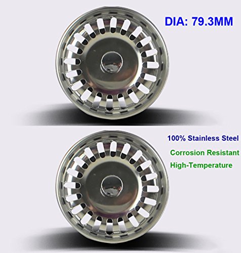 2個ステンレススチールシンクStrainers、風呂シンクシャワー排水溝トレイフィルタStrainer廃棄物プラグカバートラップキャップヘアストッパー( 79.3 mm )