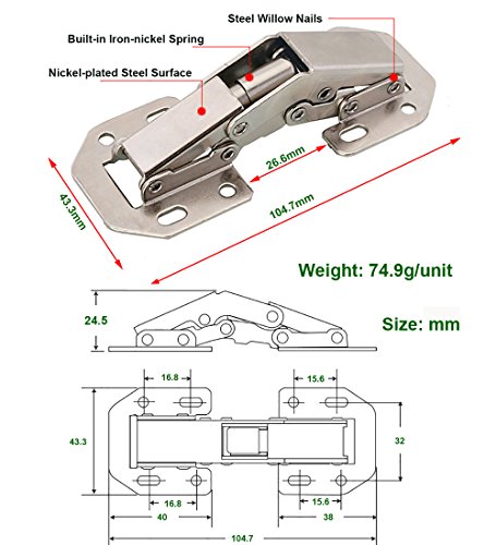 4パックのソフト遅い閉じるキッチンキャビネット90 °ドアヒンジConcealed戸棚ドアヒンジ – Noスロット必要な – 簡単にインストール